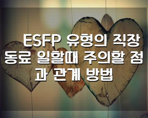 ESFP 유형의 직장 동료 일할때 주의할 점과 관계 방법관련 정리입니다.