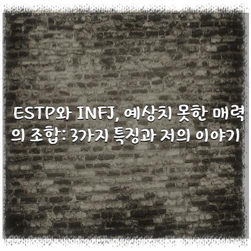 ESTP와 INFJ, 예상치 못한 매력의 조합: 3가지 특징과 저의 이야기 아래 보시겠습니다.
