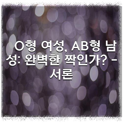 O형 여성, AB형 남성: 완벽한 짝인가? - 서론 관련내용 확인 해 보시겠습니다.