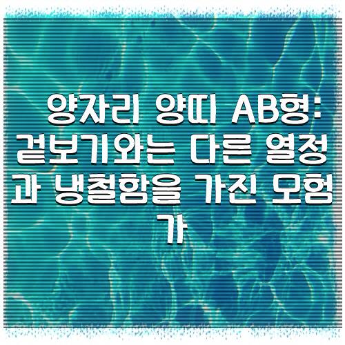 양자리 양띠 AB형: 겉보기와는 다른 열정과 냉철함을 가진 모험가 관련내용 확인 해 보시겠습니다.