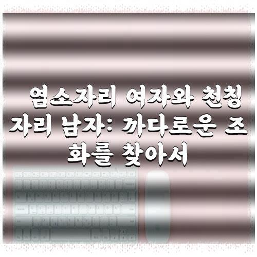 정리드린 내용은 염소자리 여자와 천칭자리 남자: 까다로운 조화를 찾아서 입니다. 찾으시는 분들에게 조금이라도 도움이 되셨길 바랍니다.