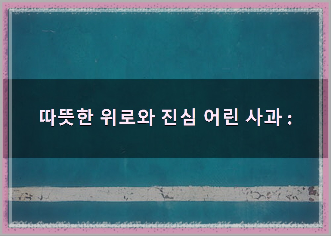 경청과 공감 이후, 그의 화가 난 이유에 대해 진심 어린 사과를 한다면 더욱 효과적입니다. "내가 잘못했어", "미안해"라는 진심 어린 사과는 그의 상처를 치유하는 첫 걸음이 될 것입니다. 또한, 그의 마음을 진정시키기 위해 따뜻한 포옹이나 손길도 도움이 될 수 있어요. 마치 부드러운 담요가 쌀쌀한 밤을 따뜻하게 해주듯, 그의 떨리는 마음을 안정시켜줄 것입니다.
