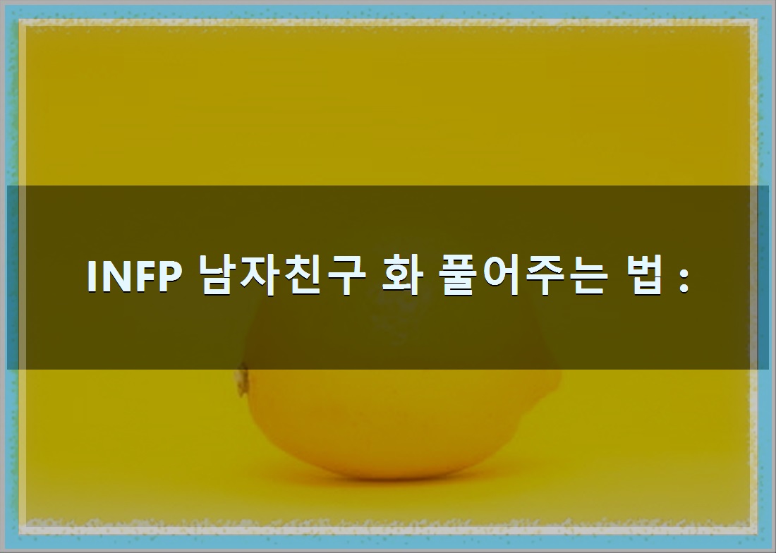 정리드린 글은 INFP 남자친구 화 풀어주는 법 : 이였습니다. 모두에게 좋은 정보가 되셨길 바랍니다.