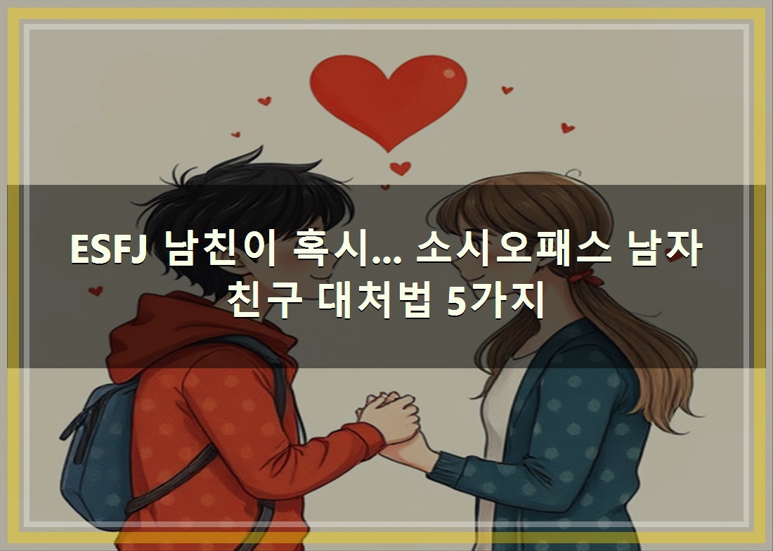 "사랑은 달콤하지만, 때로는 씁쓸할 수도 있죠 특히 ESFJ 남자친구분이 혹시 소시오패스 성향을 보인다면 더욱 힘들 수 있어요. 하지만 너무 걱정 마세요~ ESFJ 특유의 따뜻함과 현명함으로 이 어려운 상황을 헤쳐나갈 수 있는 꿀팁 5가지를 준비해 봤답니다~ 함께 알아볼까요?" 이번기회에 제대로 확인해드립니다.