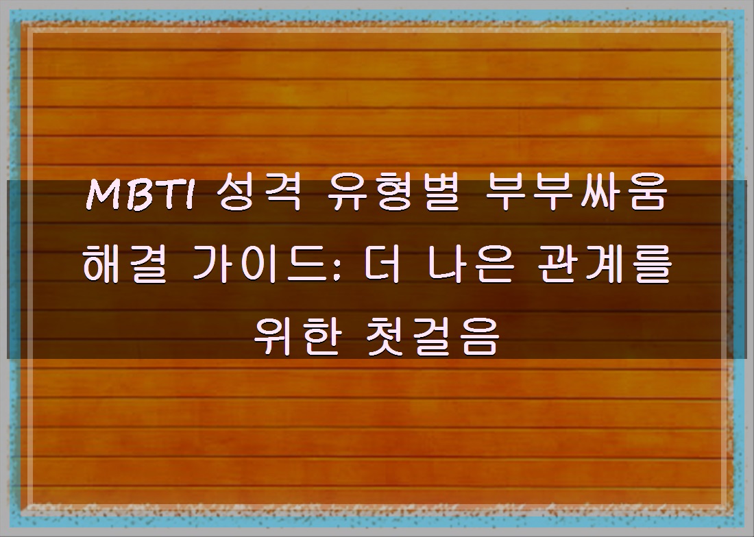 알아보자 :: MBTI 성격 유형별 부부싸움 해결 가이드: 더 나은 관계를 위한 첫걸음